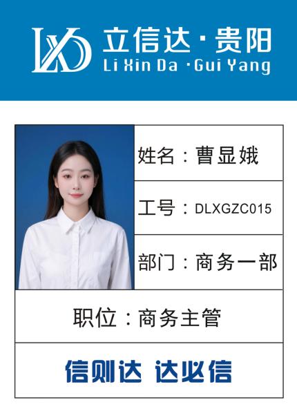 姓名:曹顯娥 工號(hào):DLXGZC015 部門:貴一一部 職位:商務(wù)主管
