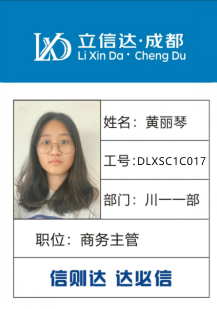 姓名:黃麗琴 工號:DLXSC1C017 部門:川一一部 職位:商務主管