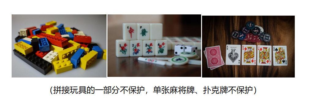 例如:拼圖積木等玩具中的插接塊不能獲得保護。 (5)不能作用于視覺或者肉眼難以確定,需要借助特定的工具才能分辨其形狀、圖案、色彩的物品;