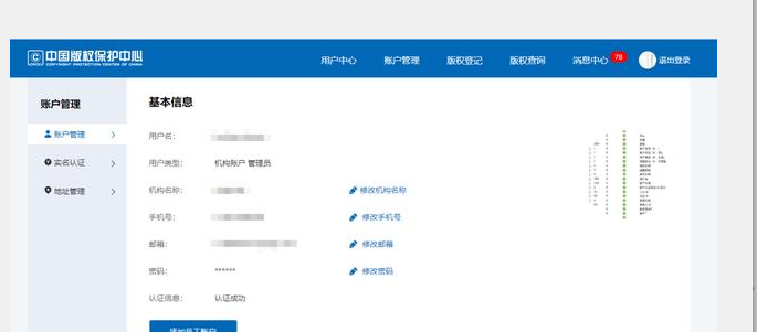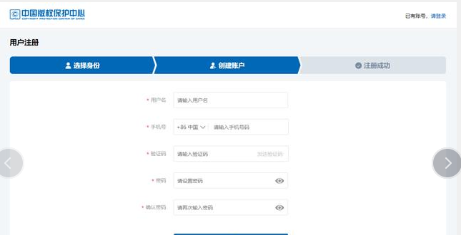 3、著作權人需要提前自己在官網(wǎng)進行注冊用戶名并填寫著作權人真實信息。。