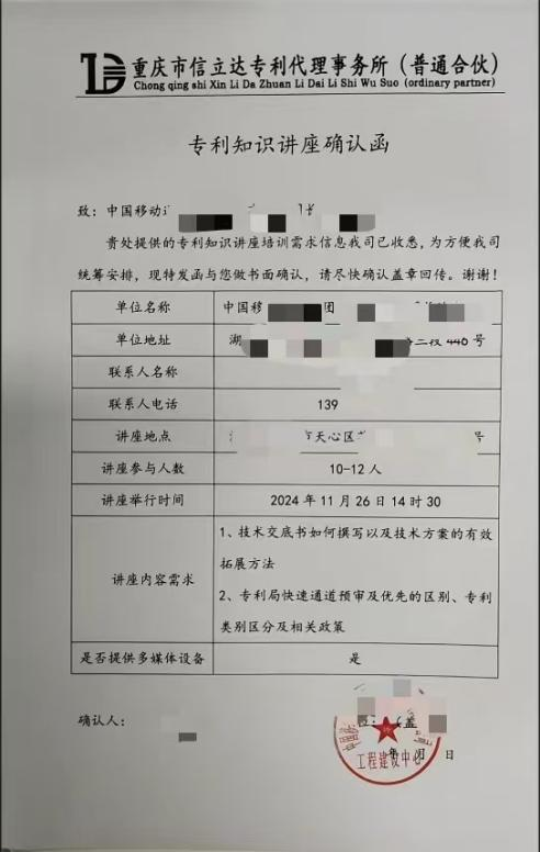 2024年11月26日14點(diǎn)30分,感謝中國(guó)**集團(tuán)**有限公司**分公司的信任與邀請(qǐng),我司開啟了十一月的專利第一講!